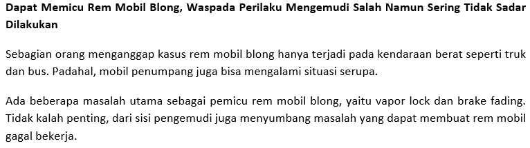 Sebagian orang menganggap kasus rem mobil blong hanya terjadi pada kendaraan berat seperti truk dan bus. Padahal, mobil penumpang juga bisa mengalami situasi serupa.