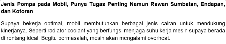 Jenis Pompa pada Mobil, Punya Tugas Penting Namun Rawan Sumbatan, Endapan, dan Kotoran